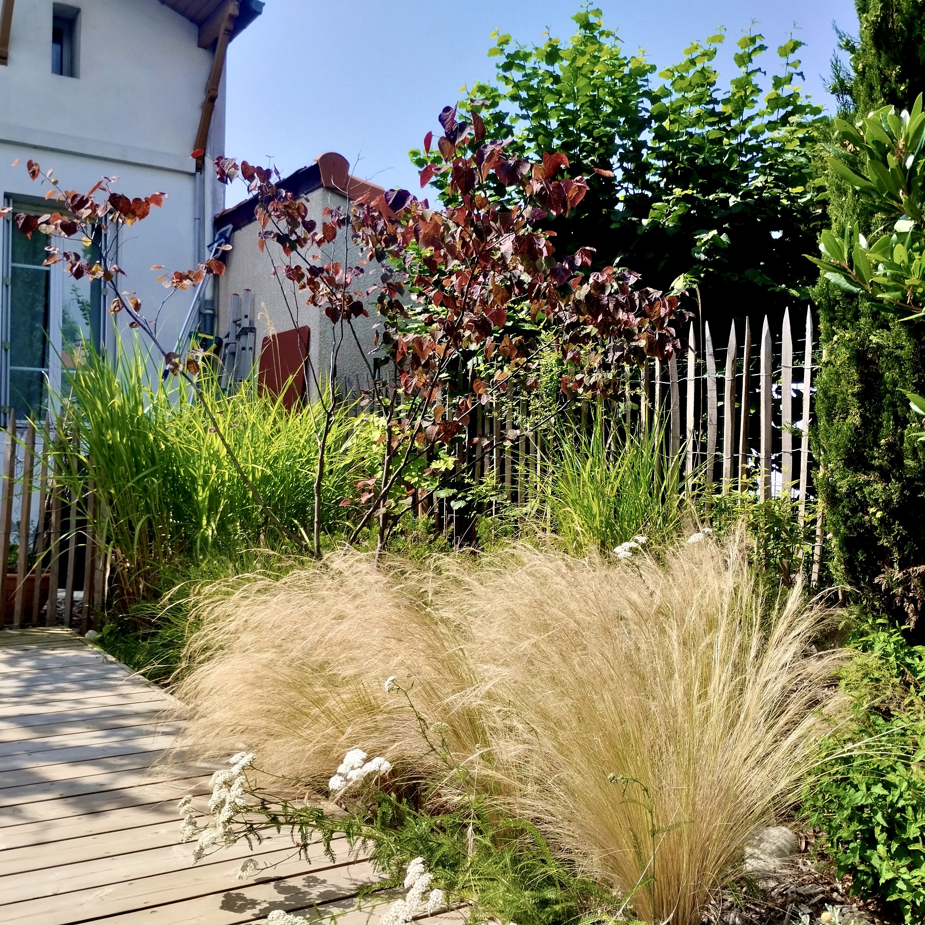 Un jardin de 300m² pensé comme une architecture vivante. Le chemin structure l’espace, les matières dialoguent, le végétal compose le rythme. Entre maîtrise et liberté, le jardin révèle une expérience progressive, où chaque détail participe à une écriture durable du lieu.
